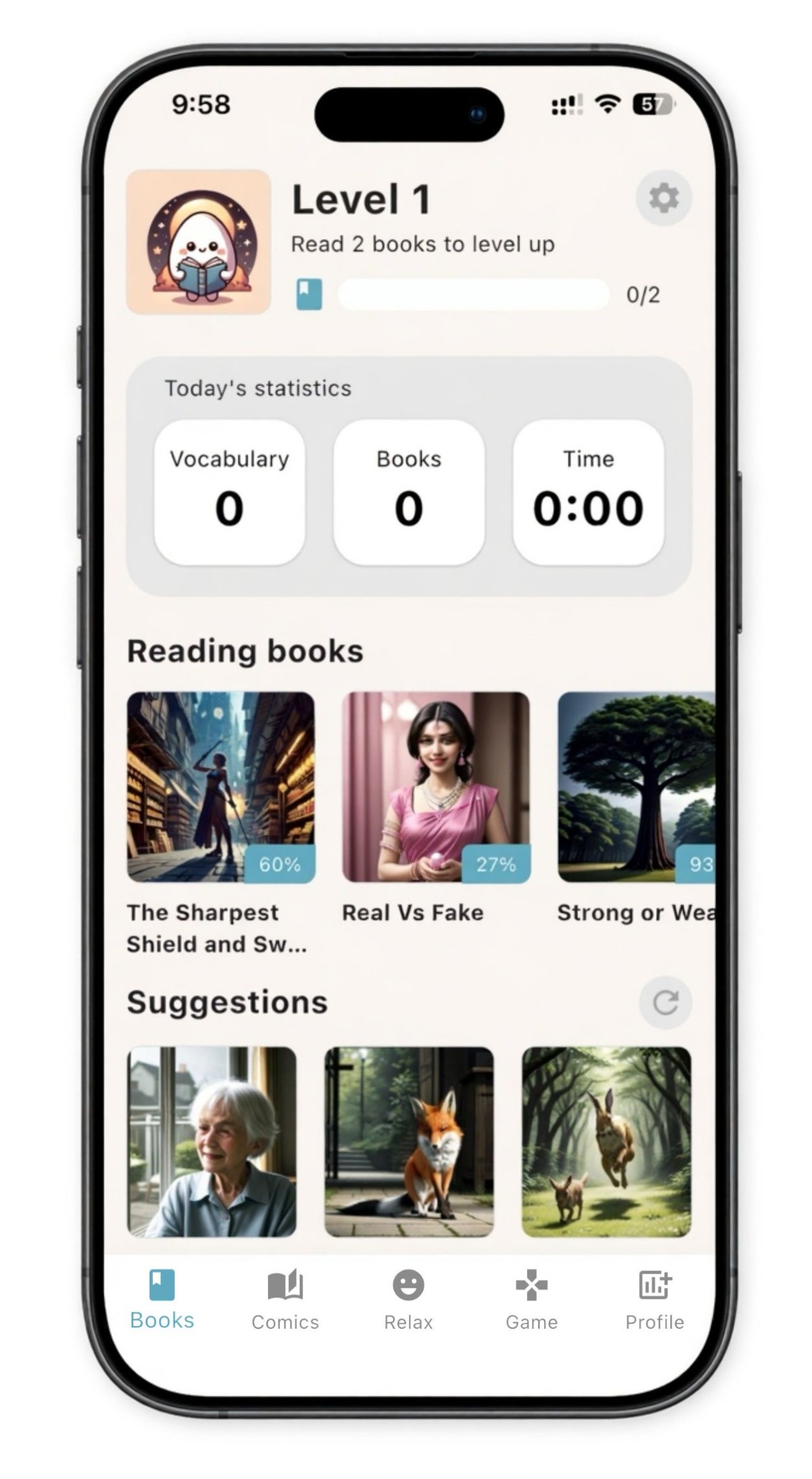 - ๐ Track Progress: Monitor reading time, books completed, and vocabulary growth.